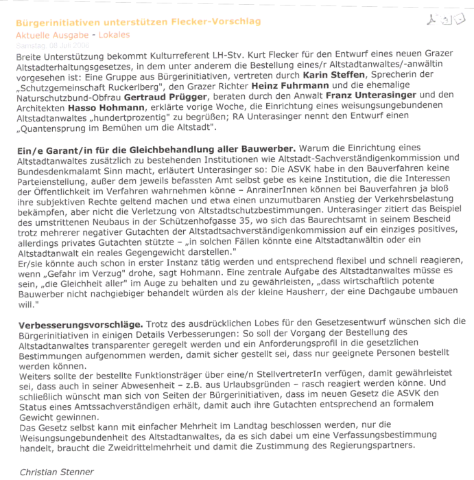 “Meilenstein für die Altstadt” Kleine Zeitung, Di., 4. Juli 2006, S.25